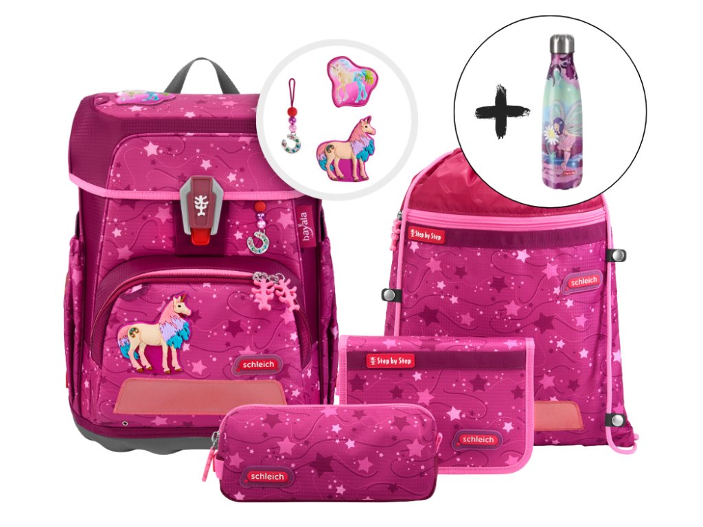 🎒 Školní set Step by Step Cloud Schleich Bayala – Marshmallow jednorožec je perfektní volbou pro malé školáky, kteří milují pohádkové motivy a rodiče, kteří hledají lehkou, ergonomickou a zdravotně šetrnou aktovkupro 1. třídu.