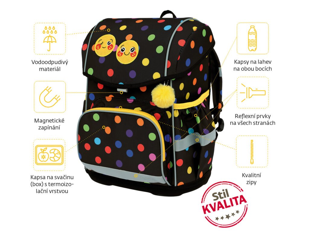 - BEZPEČNOST – bezpečnostní prvky jsou velmi důležité, proto je aktovka vybavena ze všech stran reflexními prvky, které zaručí lepší viditelnost a bezpečnost dítěte ve tmě