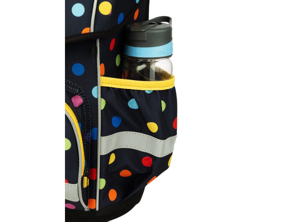 - Po obou stranách batohu se nalézají kapsy na deštník nebo lahev s pitím. Kapsy svým umístěním a elastickými okraji pomáhají eliminovat riziko rozlití nápoje a poničení obsahu aktovky.