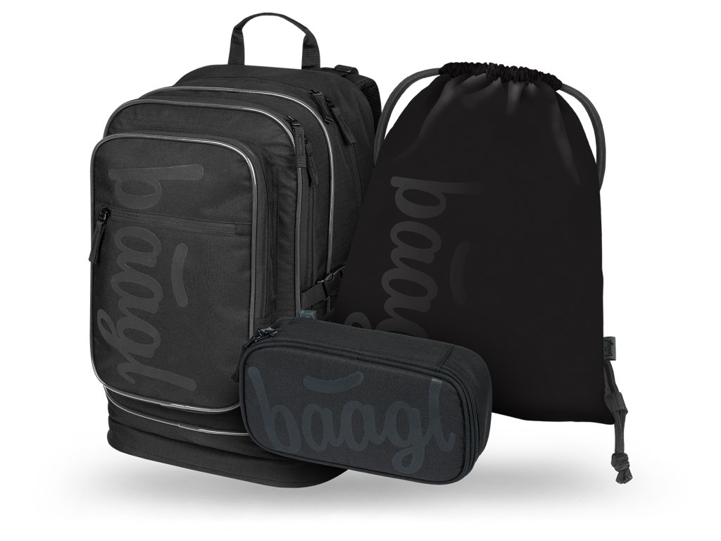 Školní set Cubic Uni černá – batoh, penál a sáček (Baagl)