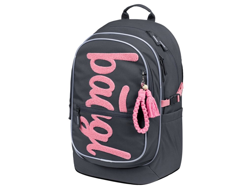 Školní batoh Baagl Core Logo růžový s výrazným logem z froté materiálu je praktický společník do školy i na kroužky.