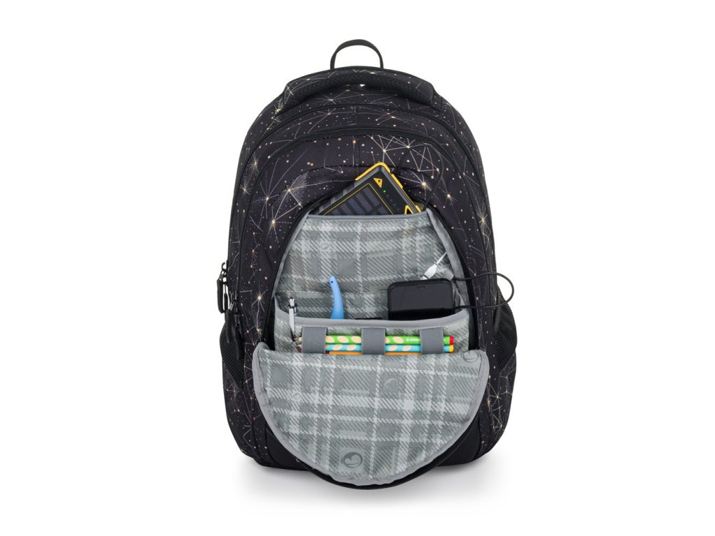 🎒 Studentský batoh Bagmaster DIGITAL 25 A s vesmírným motivem okouzlí každou školní hvězdu! 💫 Stylový design se zlatým souhvězdím a praktické provedení dělají z tohoto batohu perfektního parťáka pro každodenní docházku.