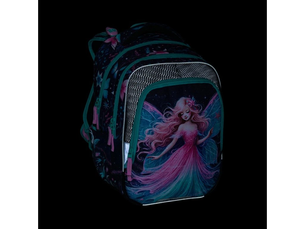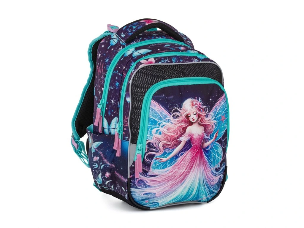 Školní batoh Bagmaster BETA 26 A s motivem víly a motýlků je ideální volbou pro všechny malé parádnice. Perfektní první batoh do školy pro 1.–3. třídu – lehký, pohodlný a krásný.