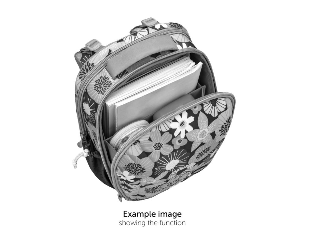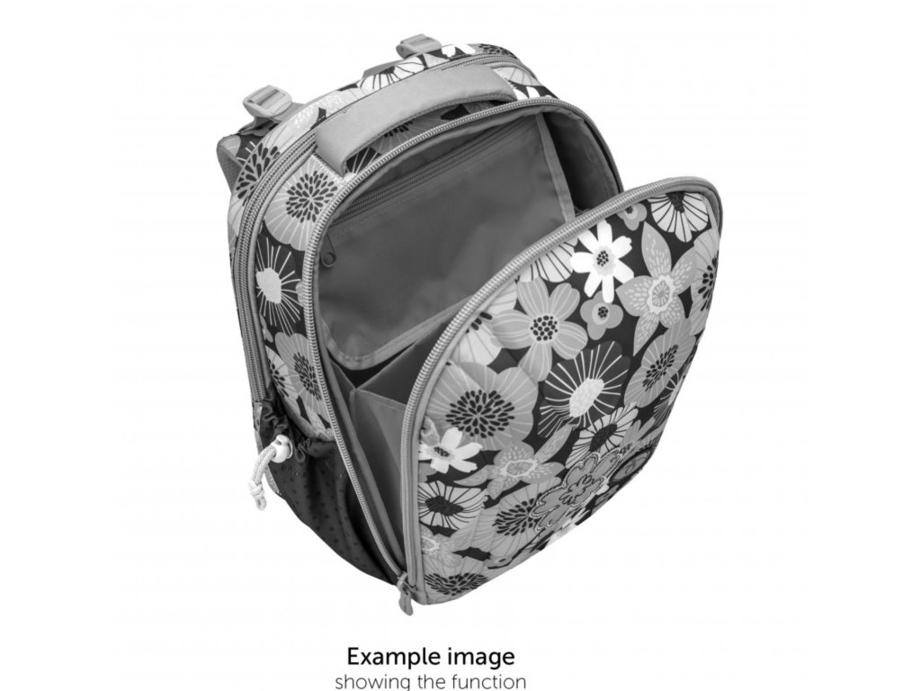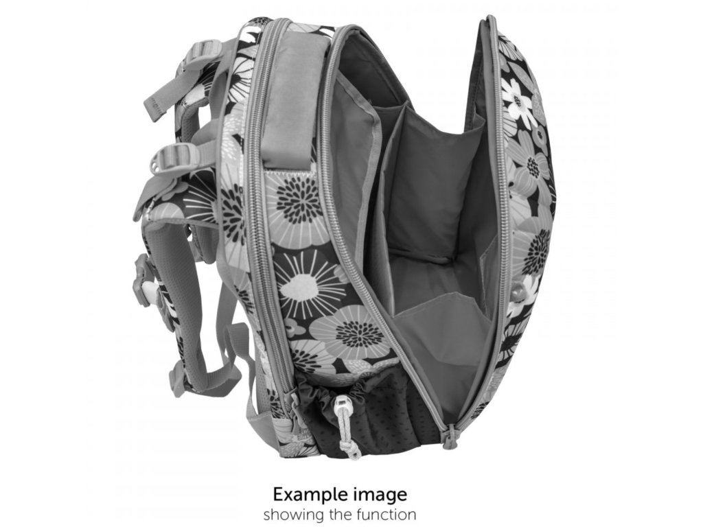 Uvnitř se nachází tři prostorné přihrádky na sešity, knihy a penál, plus menší zipová kapsa na klíče či telefon. Boční kapsy poslouží na láhev s pitím nebo deštník. Všechno má své místo!