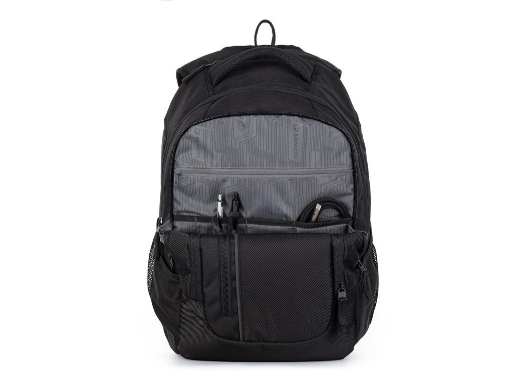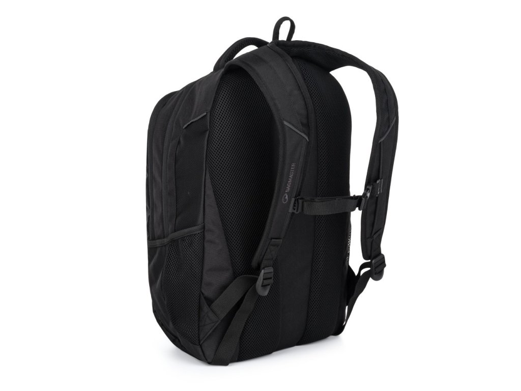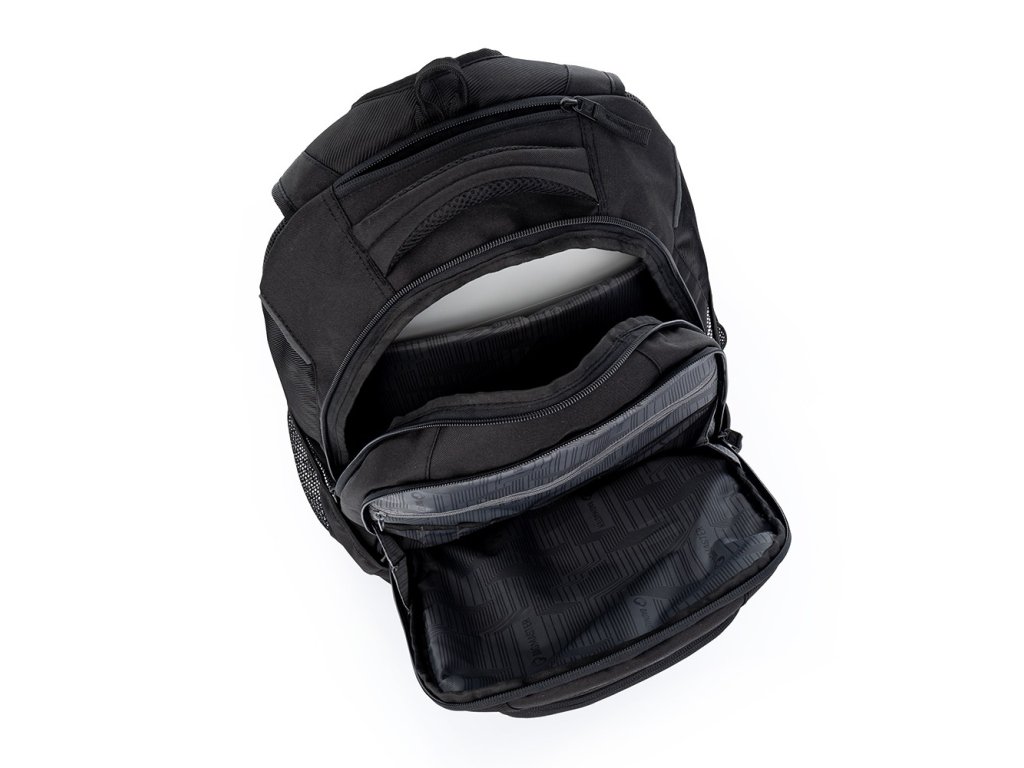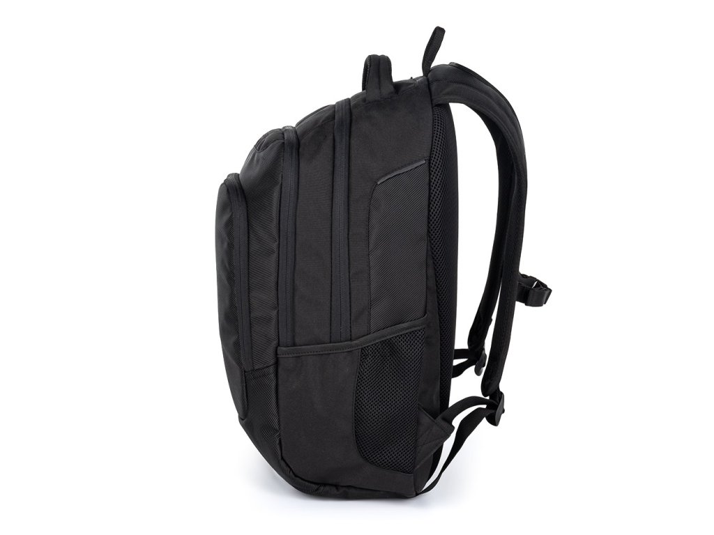 - V zadní je polstrovaná přepážka na notebook. Nošení laptopu na zádech je, na rozdíl od příručních obalů do ruky nebo na rameno, pohodlnější a bezpečnější.
