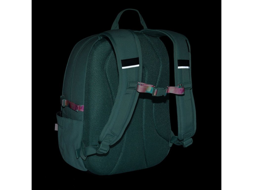 V přední části batohu jsou tři malé kapsy. Horní kapsička je polstrovaná a je jako dělaná na telefon nebo powerbanku. Spodní větší kapsa obsahuje organizér na drobnosti a skvěle pojme svačinový box nebo ETUI 25030 ve stejném designu jako batoh. Postranní kapsy na gumu jsou vyrobeny ze stejného materiálu jako batoh a skvěle udrží 1,5 litrovou lahev. Reflexní prvky jsou decentní, přesto zaručí skvělou viditelnost.