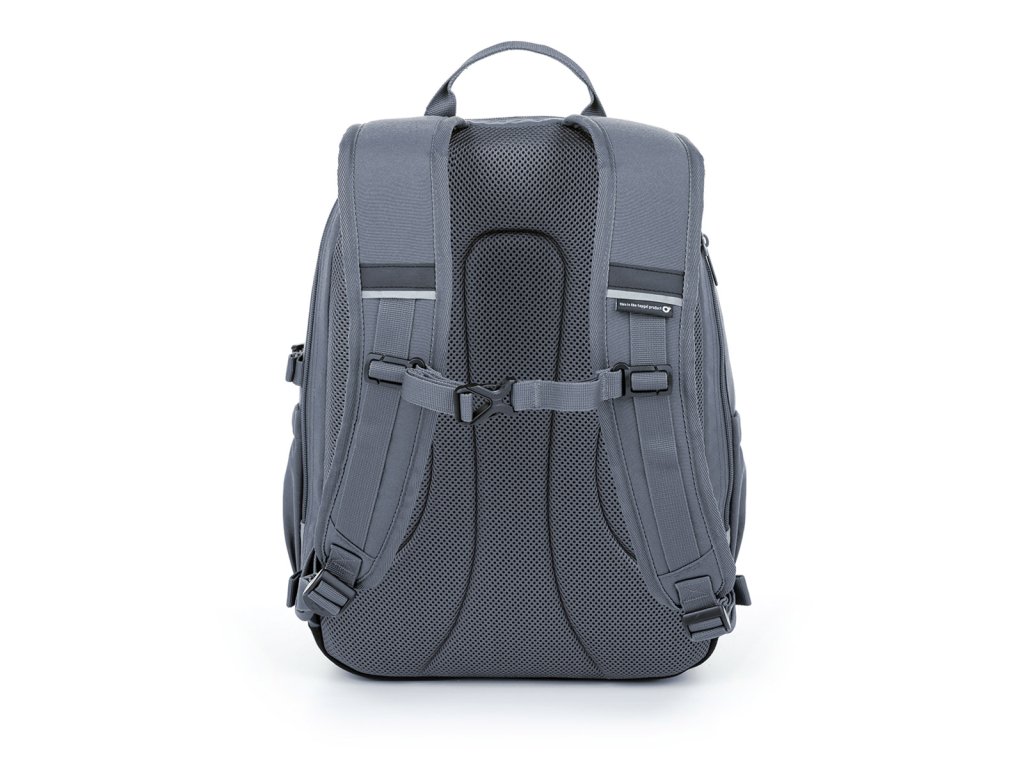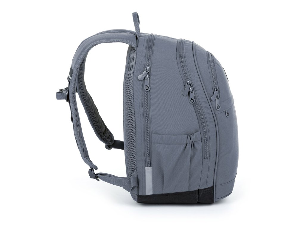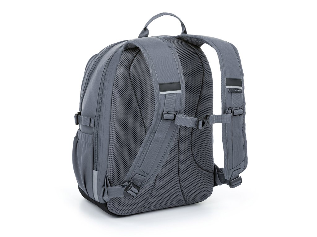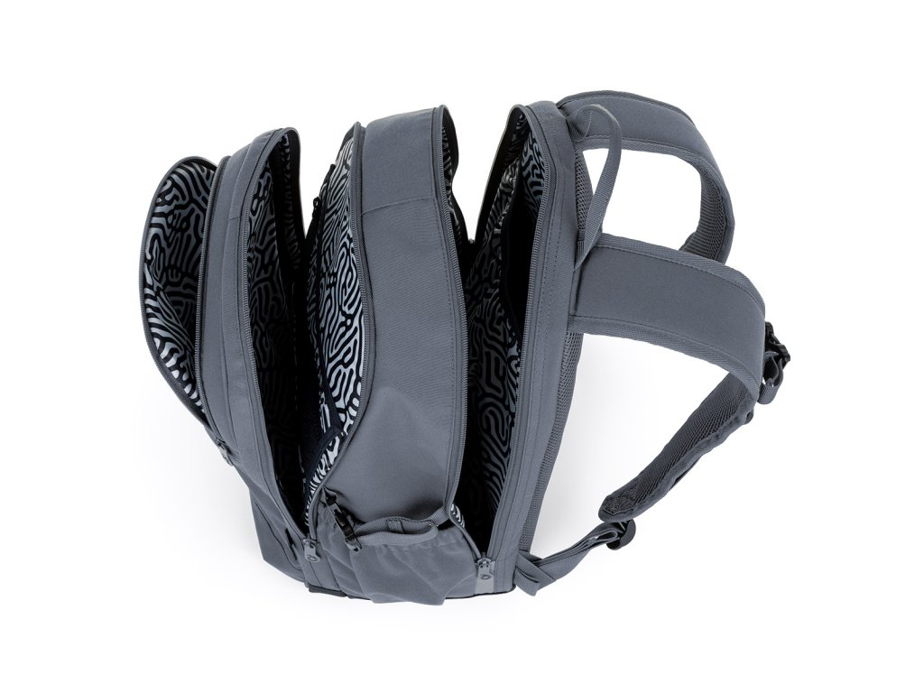 Dvoukomorový batoh v elegantní šedé barvě se stylovou nášivkou. Záda batohu jsou polstrovaná a anatomicky tvarovaná z měkké pěny. Uvnitř zadní komory je umístěna polstrovaná kapsa na notebook i tablet.