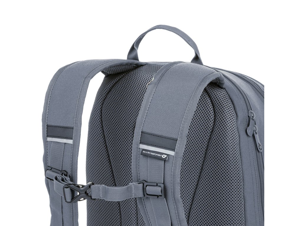 Kromě dvou hlavních komor má batoh dvě přední kapsy, do kterých se krásně vejde ETUE 24038 ve stejném designu. Uvnitř jedné z komor najdete síťovanou kapsu na doklady a karabinu na klíče. Reflexní prvky nenarušují finální vzhled batohu. Postranní kapsy na lahev s pitím jsou vyrobeny ze stejného materiálu jako batoh, perfektně udrží 1,5 litrovou láhev.