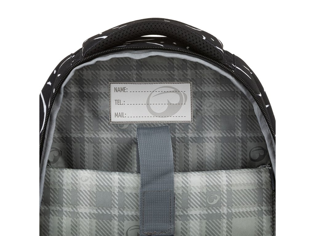 - V zadní komoře je všitá jmenovka. Školačka si na ni může lihovým či smývatelným fixem napsat jméno a kontakt pro případ, že by batoh ztratila.