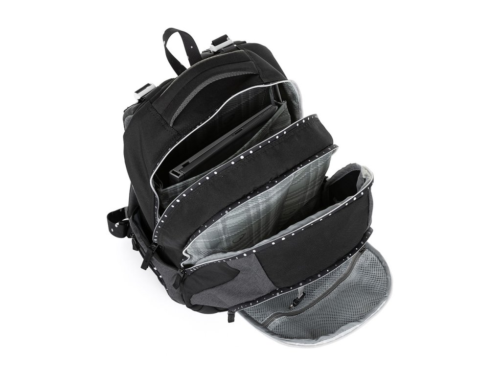 - Záda batohu jsou anatomicky tvarovaná a měkce polstrovaná 3D síťovinou