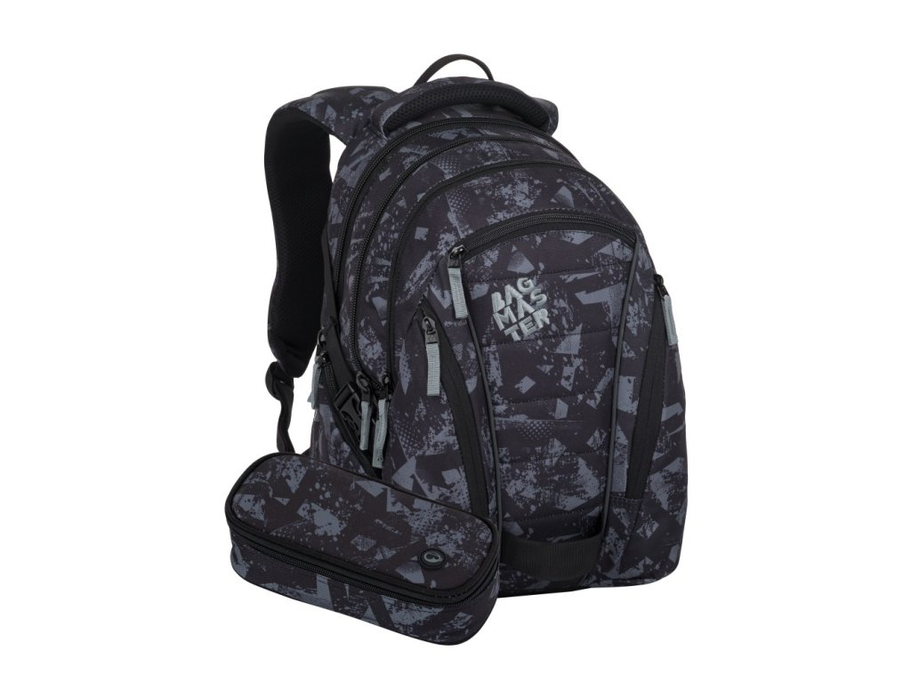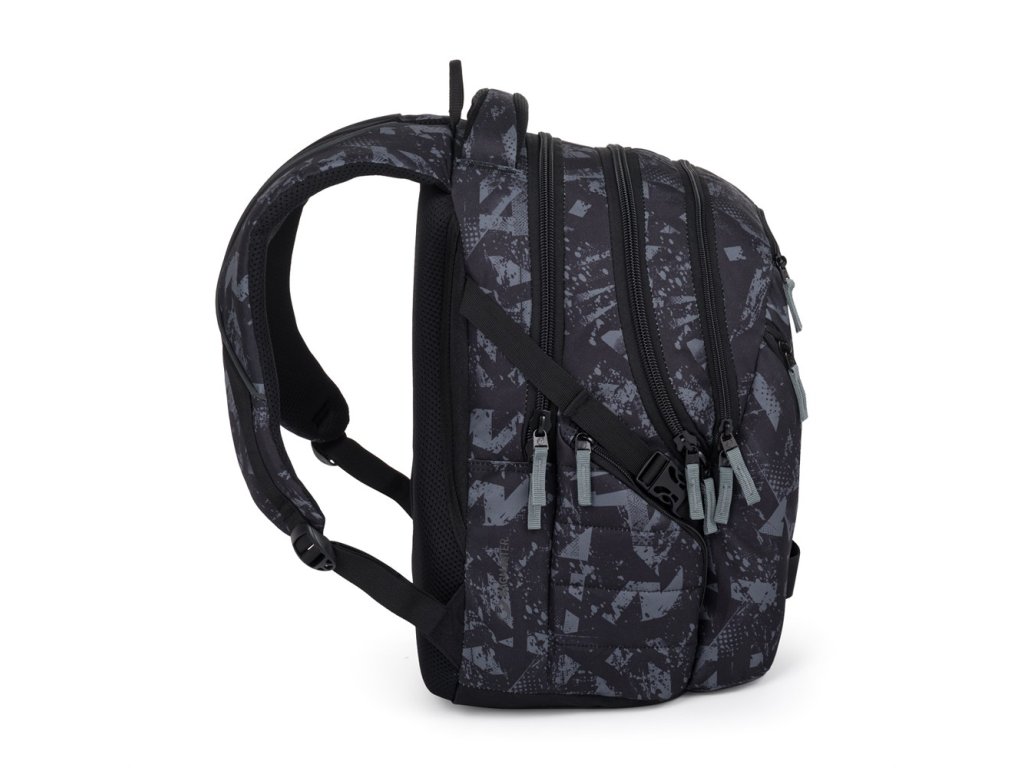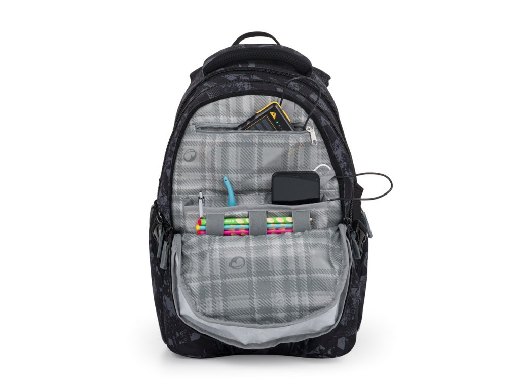 Sladěný školní set penálu a batohu pro školáky od 4. třídy, kteří potřebují místo na spoustu věcí. Má tři prostorné komory s polstrovanou přihrádkou na notebook 15” a spoustu menších kapes na různé drobnosti. Do bočních kapes se vejde i láhev 1,5 l. Zádová část batohu je anatomicky tvarovaná a měkce polstrovaná. Stejně jako ramenní popruhy. V malé komoře je organizér a odnímatelný klip na klíče. Na bočních stranách jsou kompresní popruhy pro nastavení hloubky batohu nebo uchycení flašky. Samozřejmostí jsou reflexní prvky.