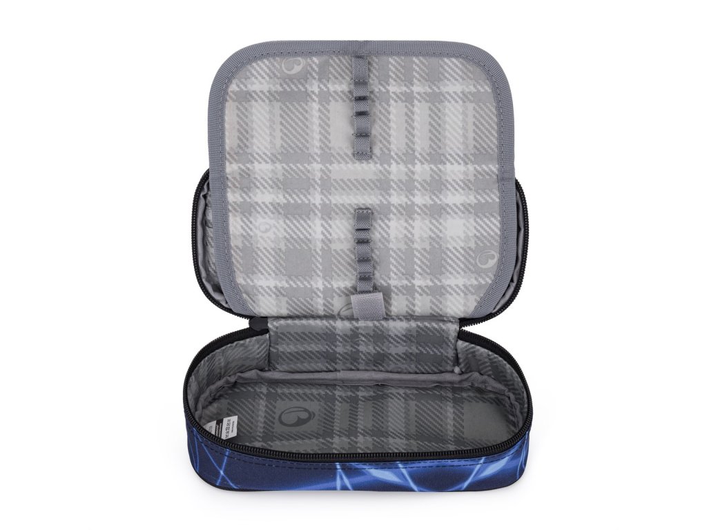 - Na černou přezku v přední kapse můžete školačce připnout síťovaný sáček. Třeba na peníze nebo sluchátka. Do kapsičky na zip se vejde power banka. Nabíjecí kabel stačí otevřeným rožkem protáhnout k telefonu umístěnému v organizéru.