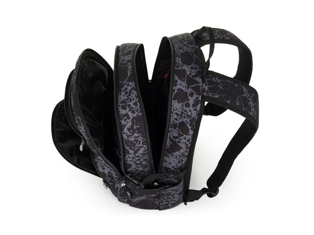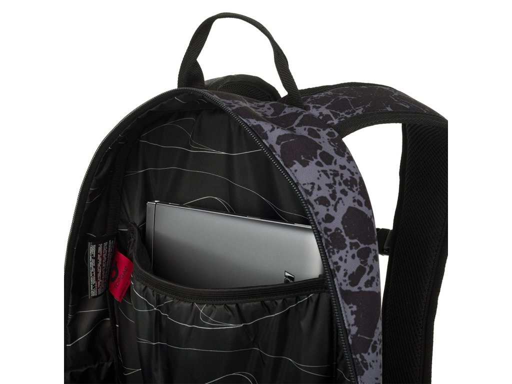 Dvoukomorový batoh se stylovou nášivkou v oblíbené tmavé barvě. Záda batohu jsou polstrovaná a anatomicky tvarovaná z měkké pěny. Uvnitř zadní komory je umístěna polstrovaná kapsa na notebook a síťovaná kapsa na zip, v druhé komoře najdete klíčenku.