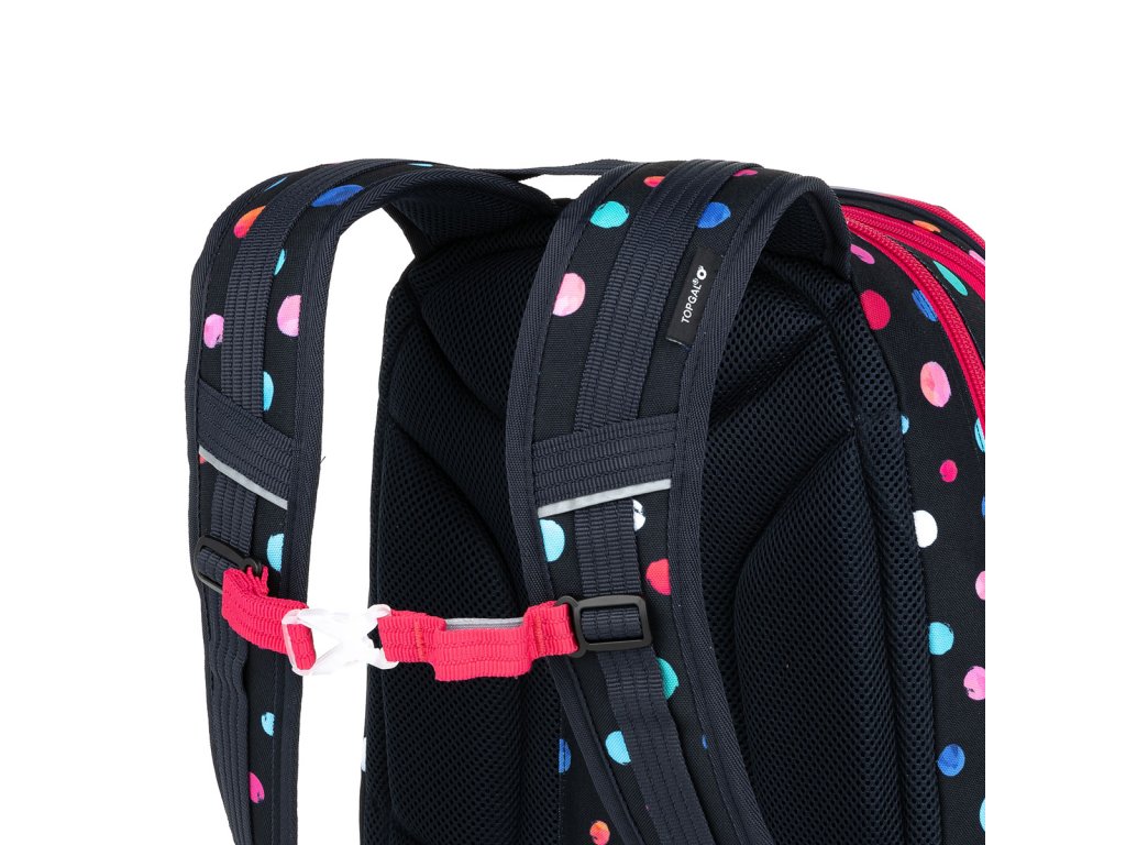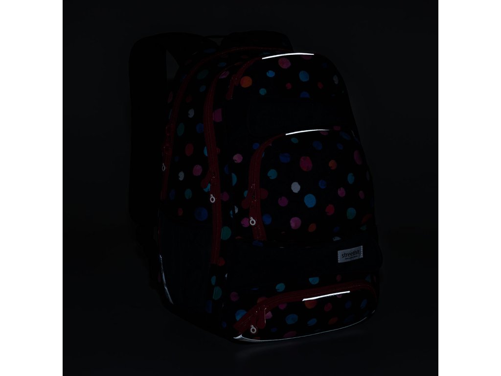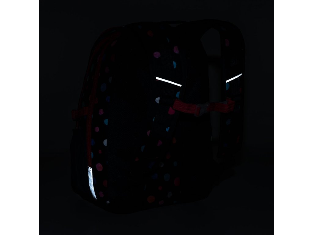 Batoh je opatřen zátěrem proti dešti. Stejně tak i pevné dno z materiálu TOPDURA. Batoh je jemně doplněn reflexními prvky na čele, bocích a ramenních popruzích. K batohu můžete zakoupit penál ETUE 22031 ve stejném designu.