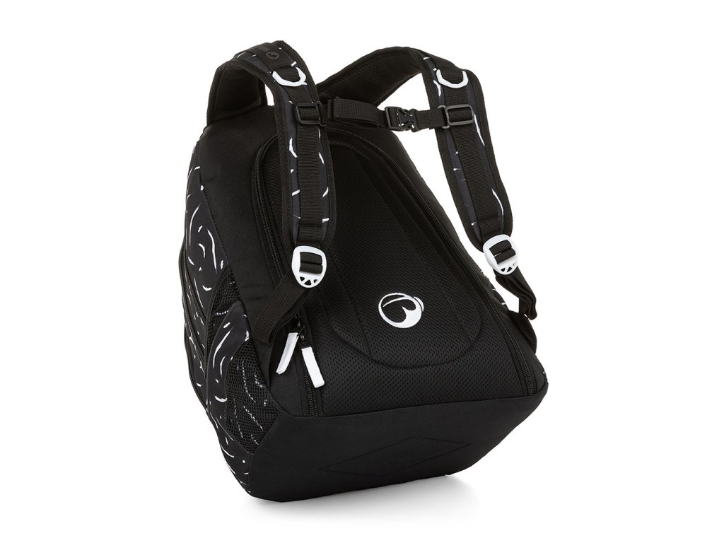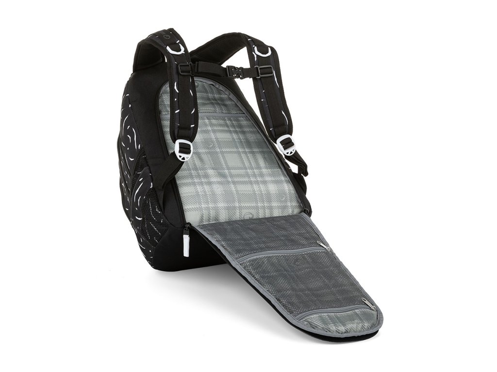 - Díky polstrovaným zádům, nastavitelným a měkkým ramenním popruhům a hrudnímu pásu batoh podporuje správné držení těla.