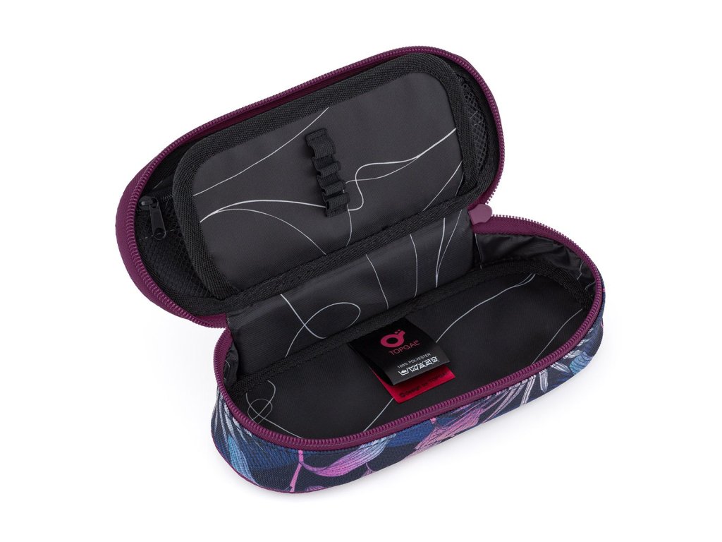 Jedna hlavní objemná komora přehledně pojme vše potřebné. Uvnitř komory najdete polstrovanou kapsu na notebook, praktickou síťovou kapsu na zip a karabinu na klíče našitou na dlouhé pružence. Další drobnosti se vejdou do dvou menších předních kapsiček – třeba penál ETUE 22035 ve stejném designu.