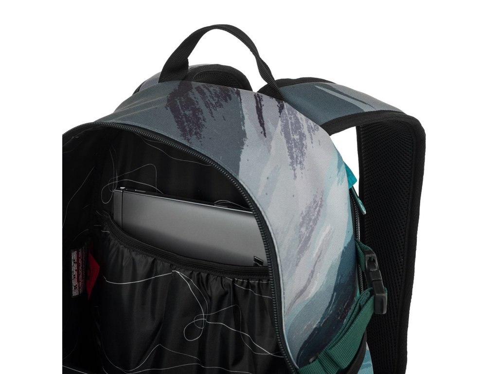 Jednokomorový batoh s odlehčeným zádovým systémem z měkké pěny. Součástí velké komory je polstrovaná kapsa na notebook i tablet a uzavíratelná kapsa na doklady. Díky své váze je tento střih vhodný nejen do školy, ale i do města nebo na výlety.