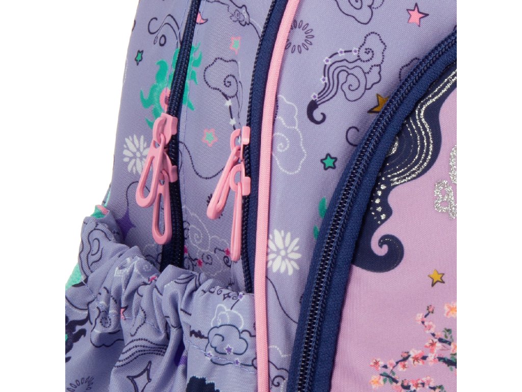 - Velká přihrádka s látkovou přepážkou pro lepší přehlednost školních potřeb.