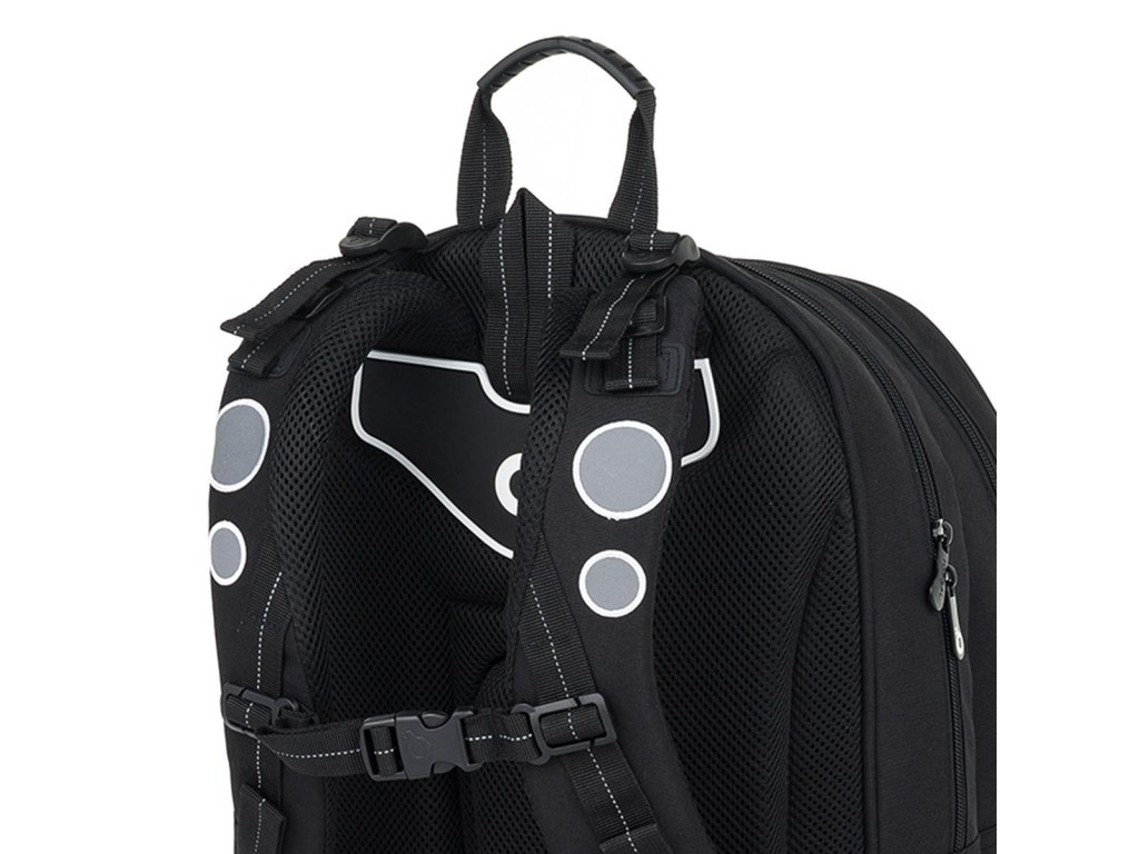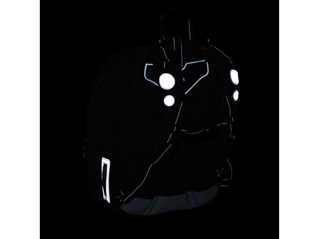 - reflexní prvky: na čele a bocích batohu, na ramenních popruzích
