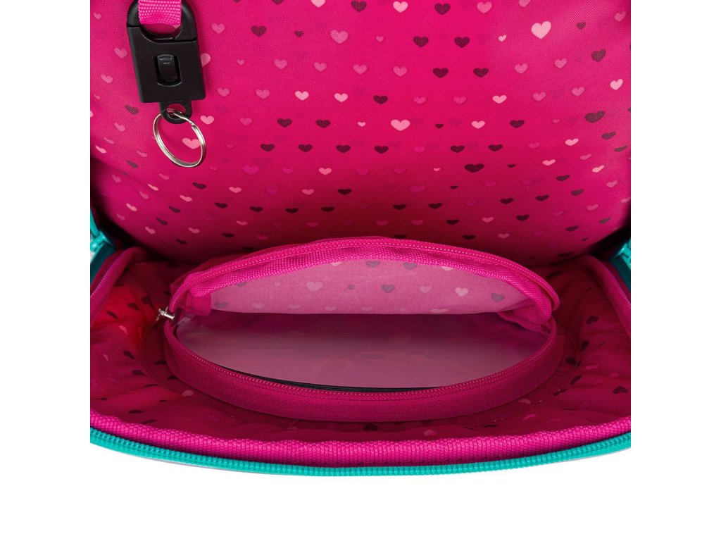 Batoh má dvě objemné hlavní komory. Do nejširší zadní komory doporučujeme dát nejtěžší učebnice nebo desky na sešity. Přední komora je o něco užší, a je v ní umístěna malá síťová kapsa na zip a jmenovka.