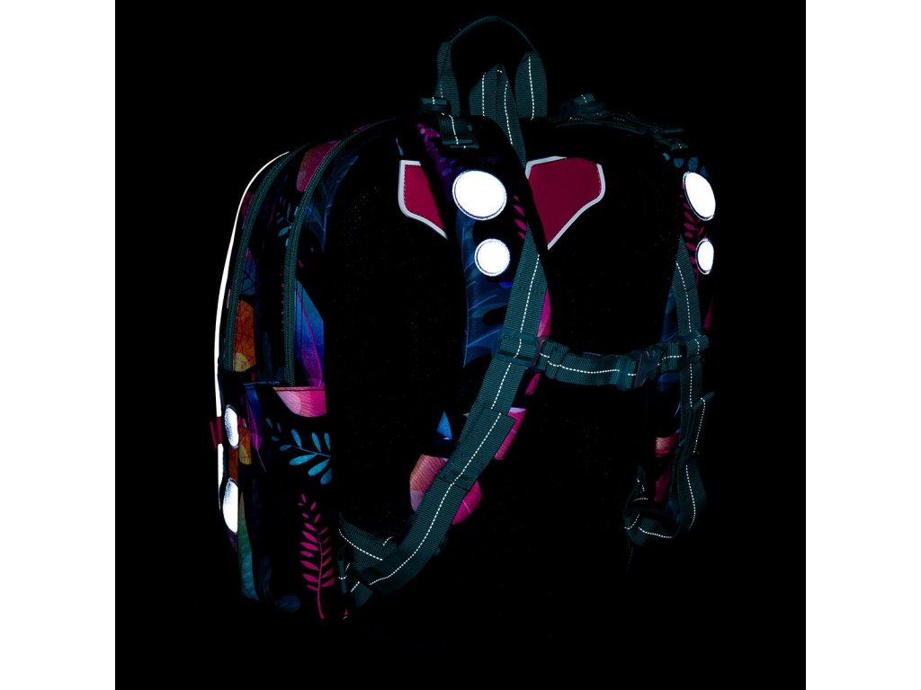 - reflexní prvky: na čele a bocích batohu, na ramenních popruzích