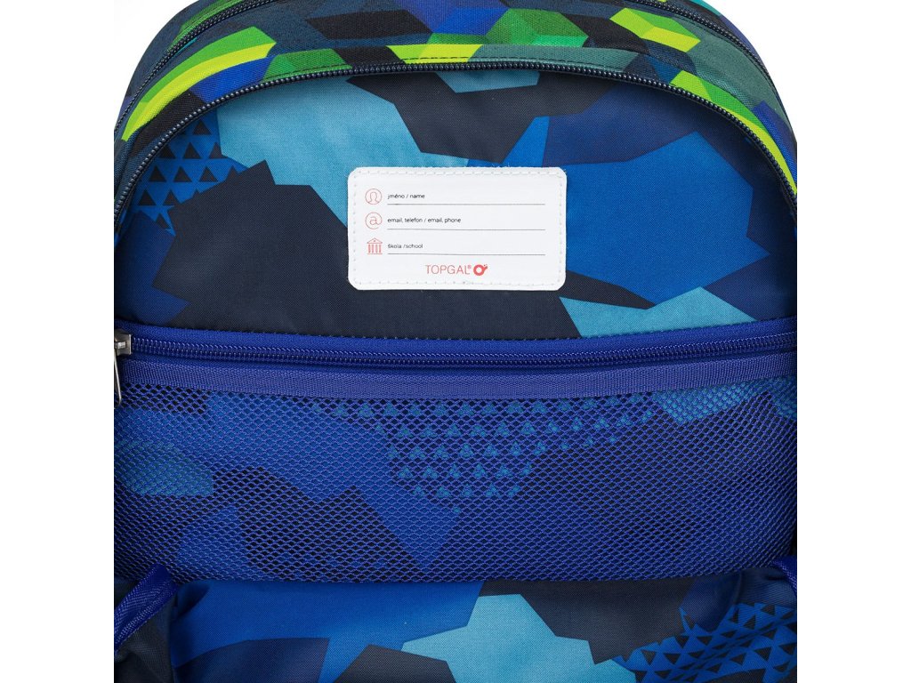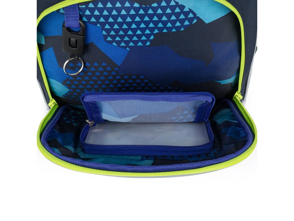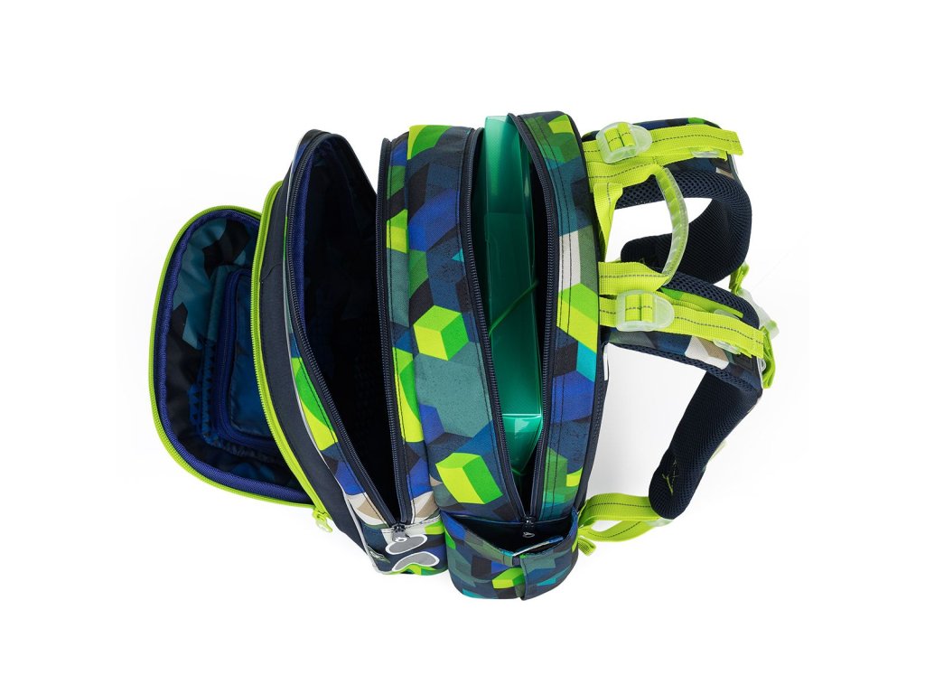Batoh má dvě objemné hlavní komory. Do nejširší zadní komory doporučujeme dát nejtěžší učebnice nebo desky na sešity. Přední komora je o něco užší, a je v ní umístěna malá síťová kapsa na zip a jmenovka.