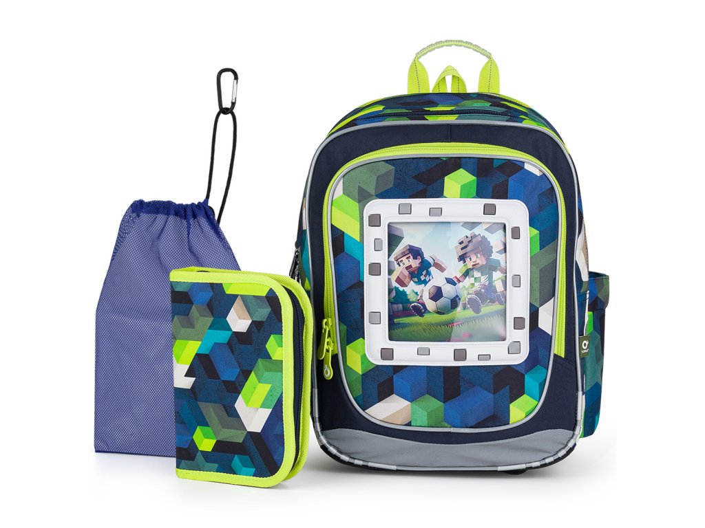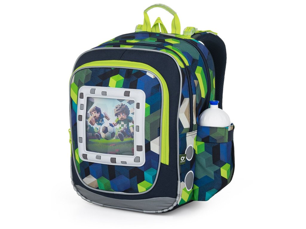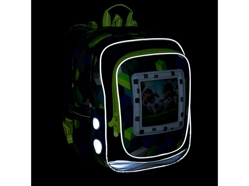 Model ENDY neváží ani kilogram, proto je ideální pro kluky s výškou od 110 cm do první až třetí třídy ZŠ. Součástí batohu jsou čtyři obrázky se zvířecím a sportovním motivem v Minecraft stylu.