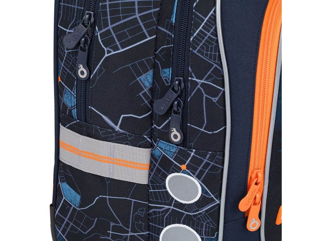 Batoh má dvě objemné hlavní komory. Do nejširší zadní komory dejte nejtěžší učebnice nebo desky na sešity. Přední komora je o něco užší, je v ní ukrytá malá síťová kapsa na zip a jmenovka.