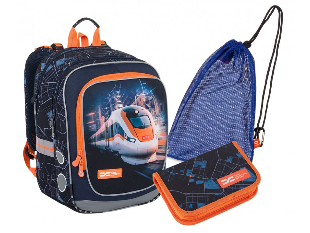 Lehký školní batoh Topgal s vlakem ENDY 24012 SET MEDIUM