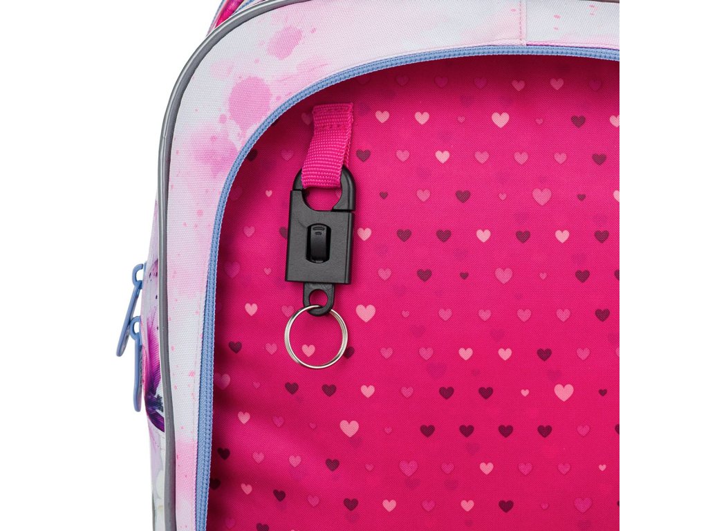 Batoh má dvě objemné hlavní komory. Do nejširší zadní komory dejte nejtěžší učebnice nebo desky na sešity. Přední komora je o něco užší, je v ní ukrytá malá síťová kapsa na zip a jmenovka.