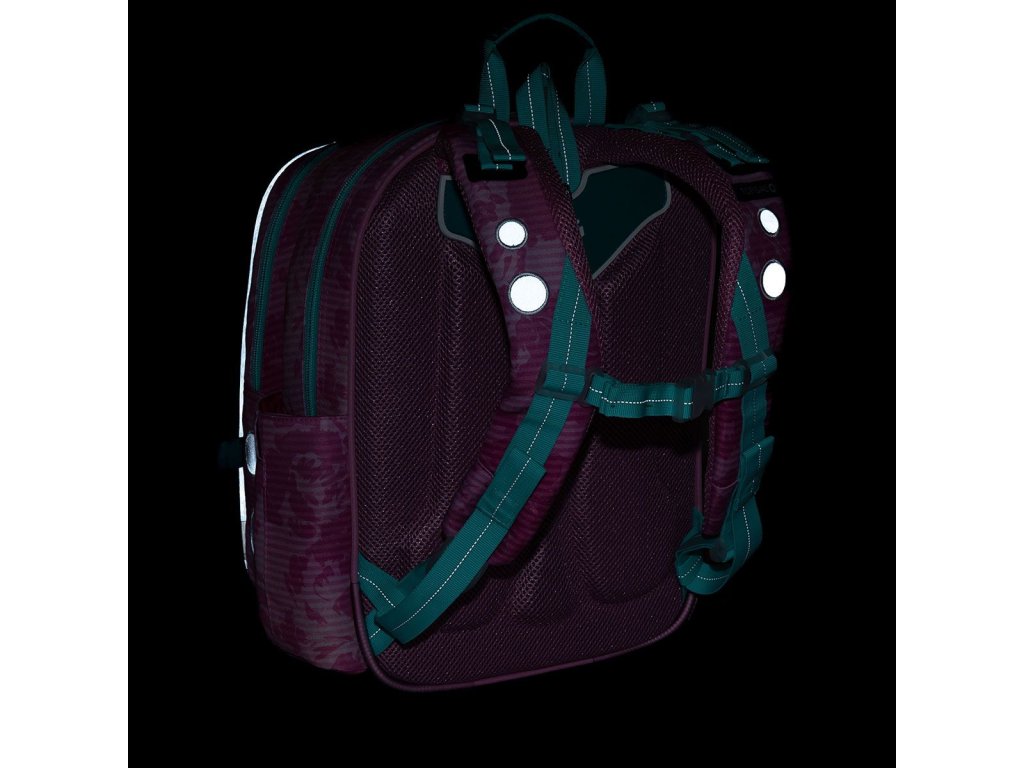Náš tip:Posviťte si na batoh ve tmě a uvidíte, kolika reflexními prvky je opatřen. Dalece překračuje doporučené množství reflexních prvků, proto vaše dítě nikdo ve tmě nepřehlédne.