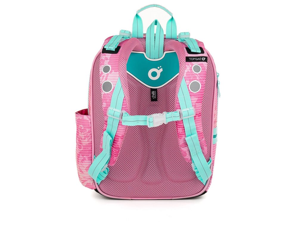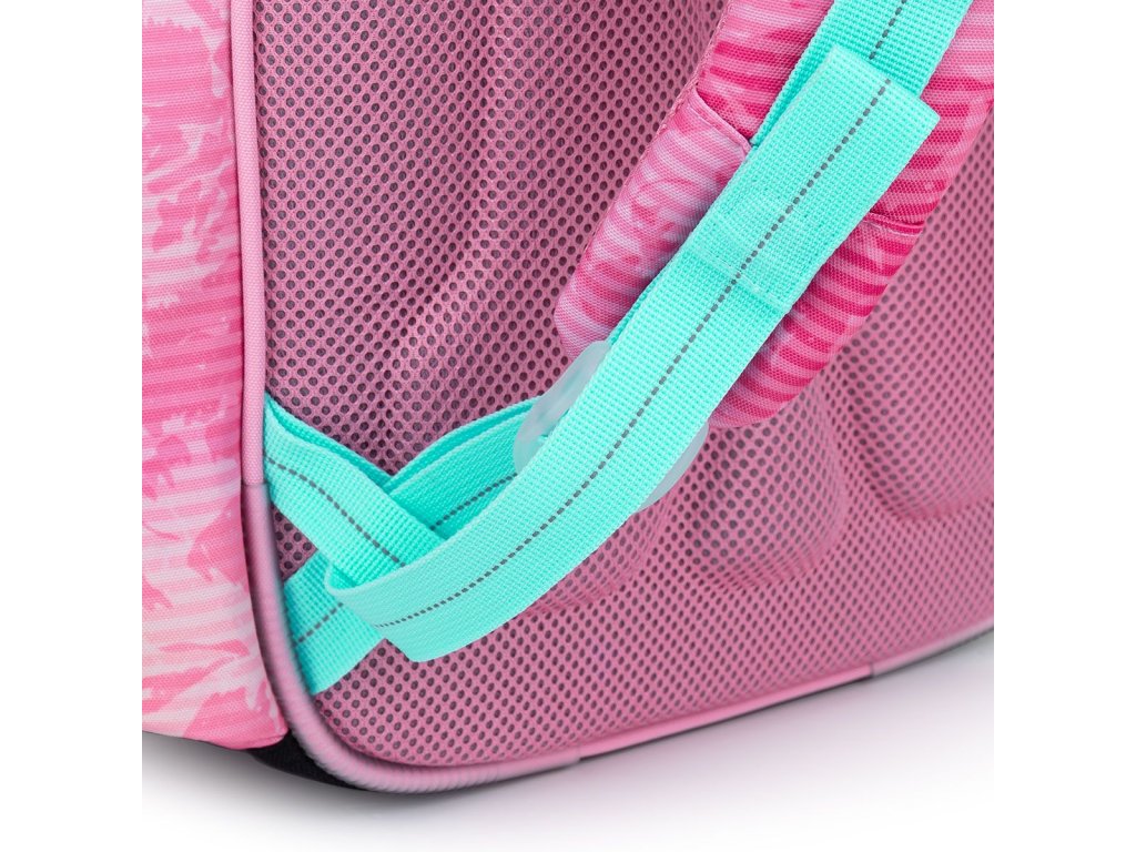 Batoh má dvě objemné hlavní komory. Zadní komora je širší - doporučujeme k zádům dávat nejtěžší učebnice nebo desky na sešity. Přední komora je o něco užší a je v ní umístěna ještě malá síťová kapsa na zip a jmenovka.