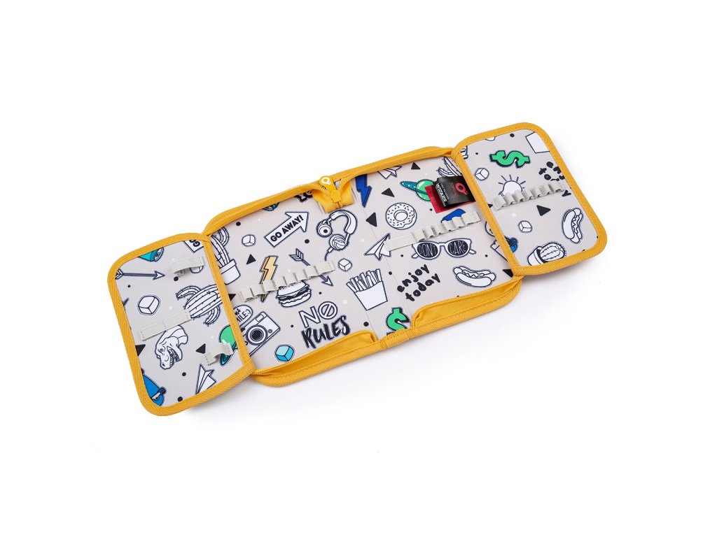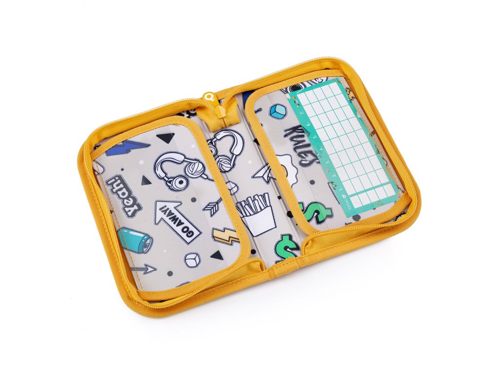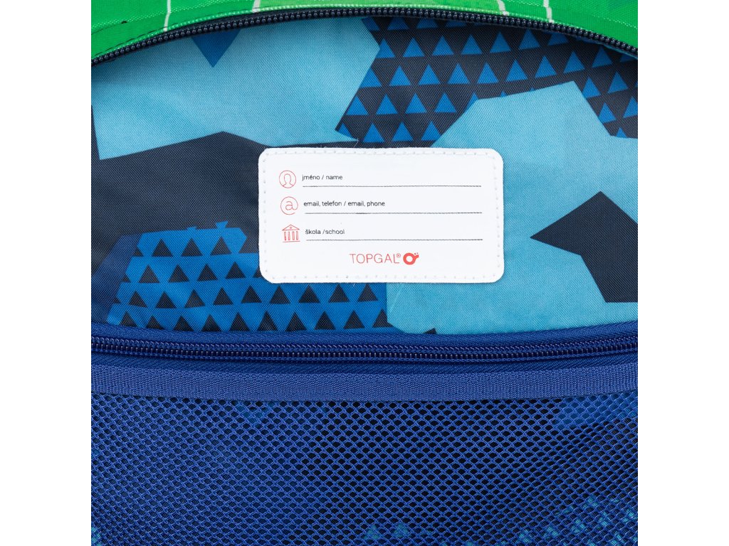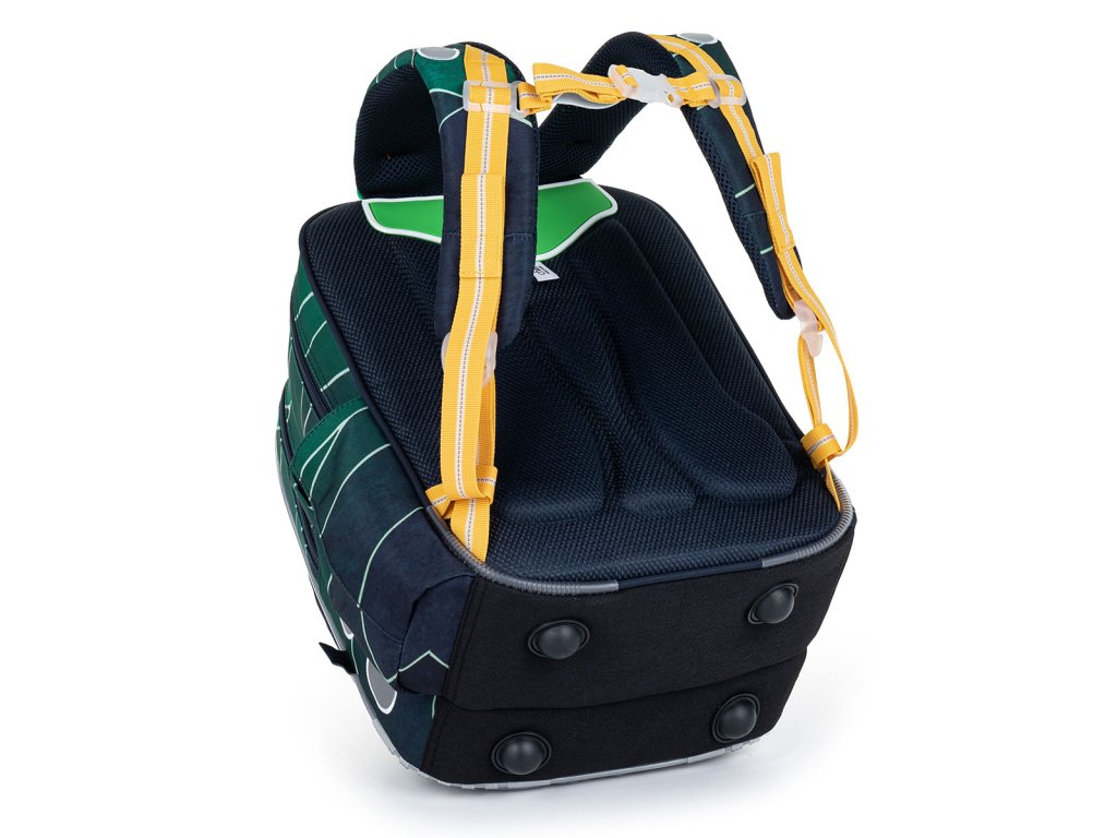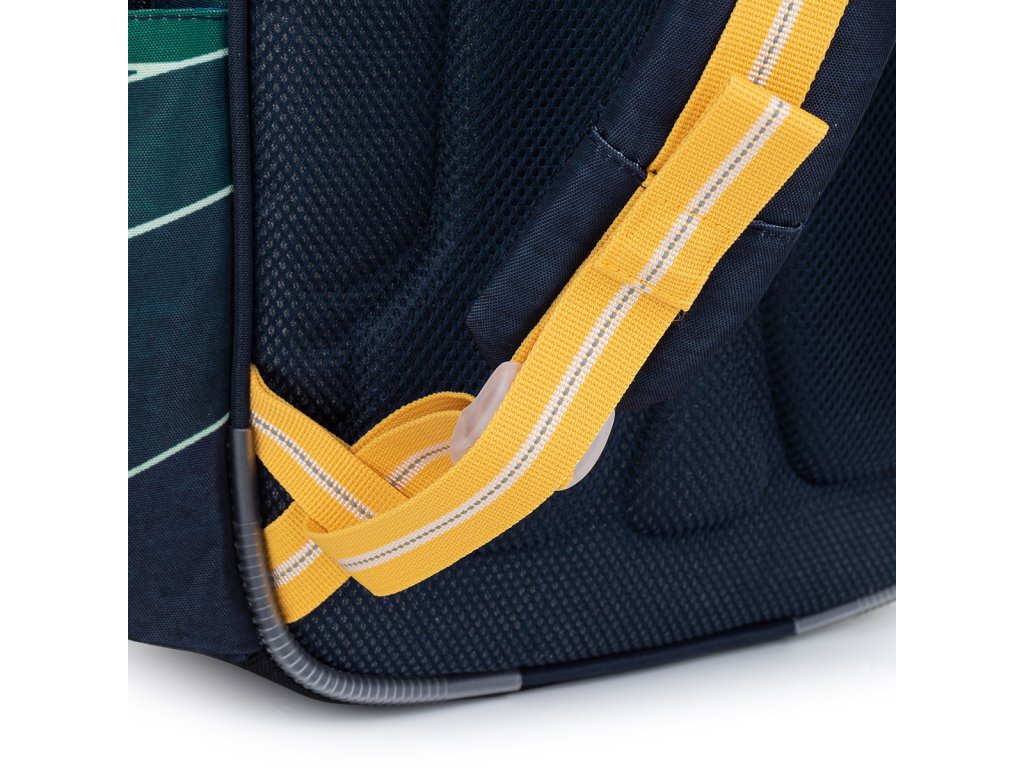 Batoh má dvě objemné hlavní komory. Zadní komora je širší - doporučujeme k zádům dávat nejtěžší učebnice nebo desky na sešity. Přední komora je o něco užší a je v ní umístěna ještě malá síťová kapsa na zip a jmenovka.