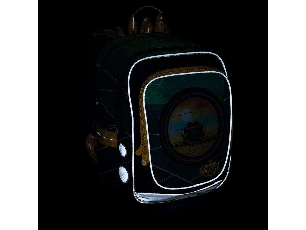 Zelený dvoukomorový batoh s vyměnitelnými obrázky zemědělských strojů. Padne i těm nejmenším dětem.