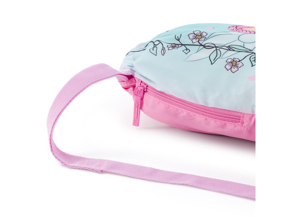 - Ve spodní části sáčku je síťované odvětrání. To se hodí hlavně když školačka do vaku hodí zpocený úbor z tělocviku nebo gymnastiky.