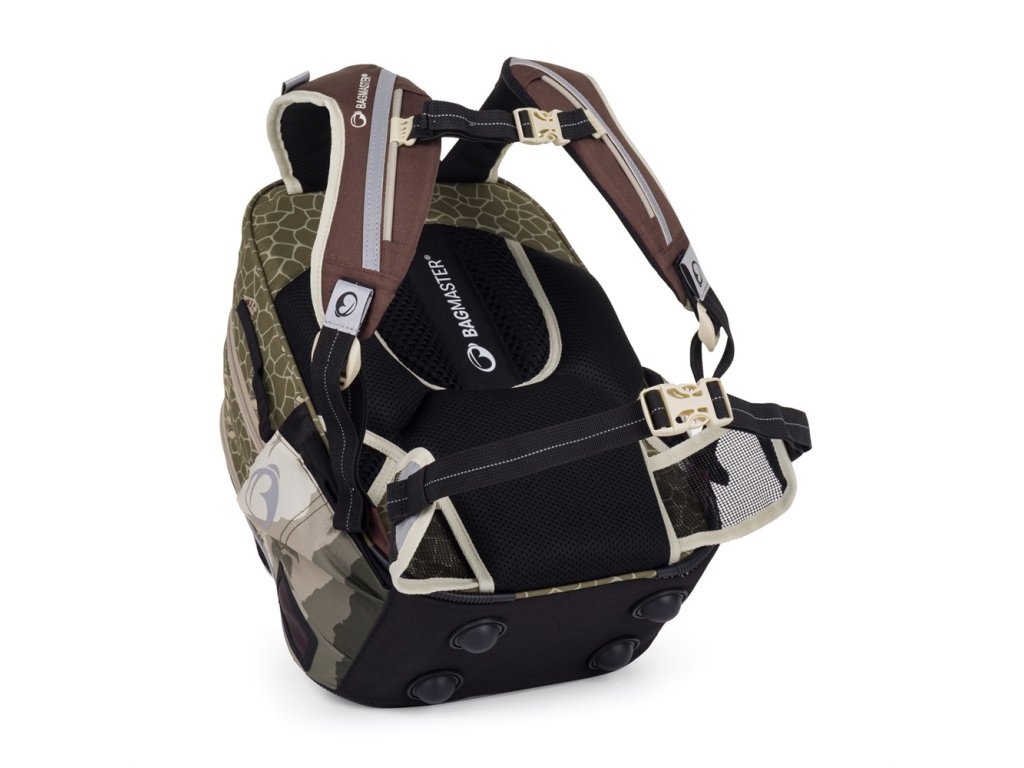 - Podstava batohu je vyrobena z pevného, hustě tkaného a odolného materiálu. Spolu s komorami batohu tvoří pevný krunýř, ve kterém se učebnicím nebudou mačkat rožky ani sesouvat obaly.