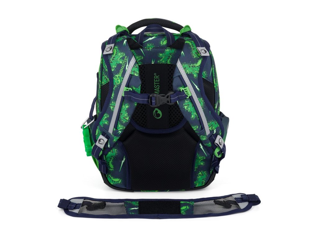 - Lehký a vyjímatelný bederní pás je vyrobený z prodyšné síťoviny. Školák se pod ním nepotí, ani mu bederák nevytváří kolem těla „pneumatiku“. Navíc je opatřený reflexními prvky. Díky bedernímu pásu se váha batohu rozloží z ramenou také na bedra.
