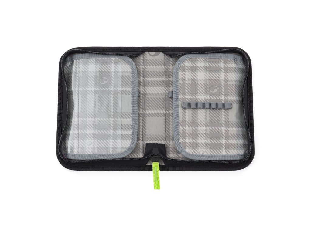 - Do kapsičky na zip se vejde power banka. Nabíjecí kabel stačí otevřeným rožkem protáhnout k telefonu umístěnému v organizéru.