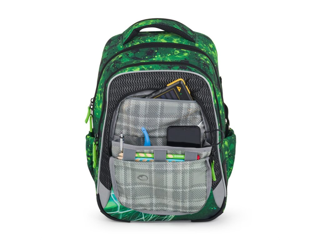 - Baťoh se Ti ale nebude jen líbit. Bude Ti i dobře sloužit. Ve třech prostorných komorách a bočních kapsách máš dost místa na učebnice, sešity, pouzdro, pití i svačinu.