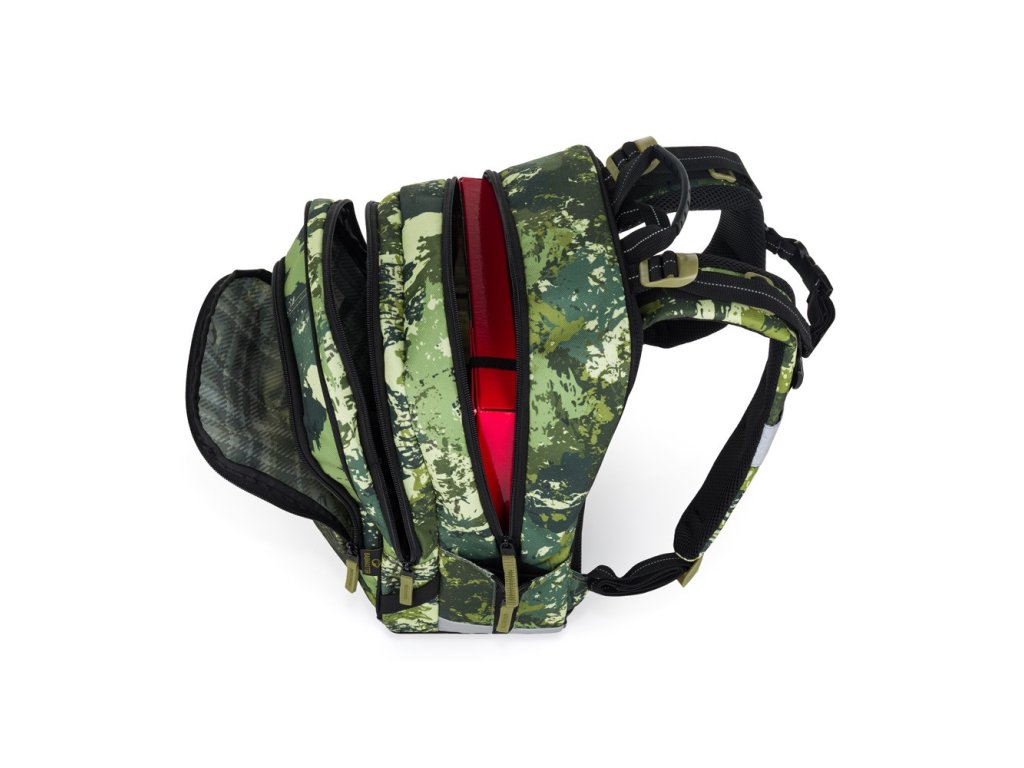 - Nastavitelné ramenní popruhy, měkce polstrované, včetně hrudní pásky a reflexních prvků