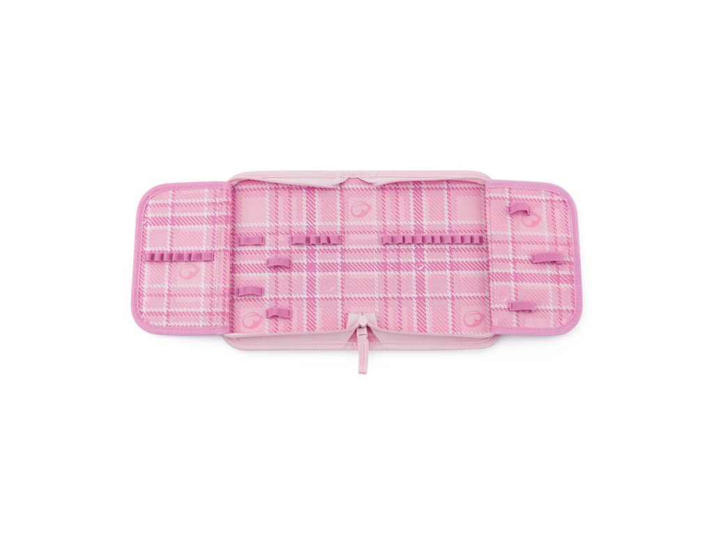 - Otevřením schopní školačka rozbalí celou řadu pružných gumových úchytů na tužky, pastelky, fixy, kružítko, gumu i ořezávátko.
