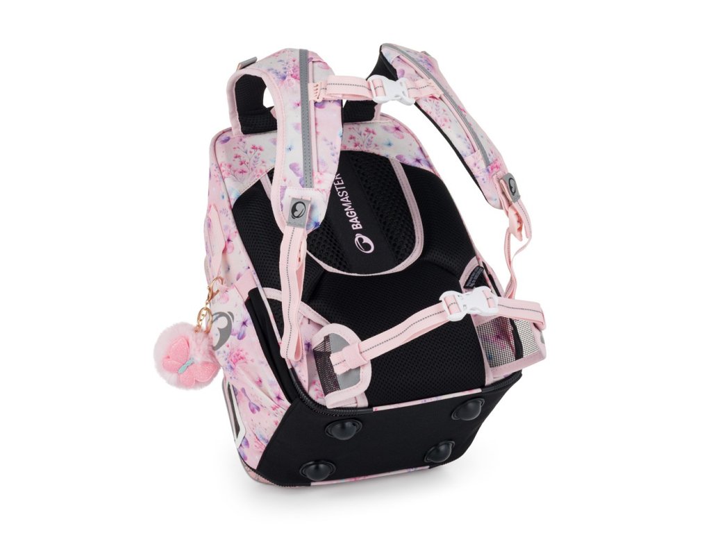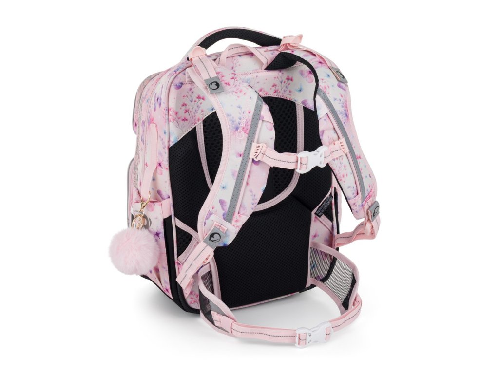 - Ramenní popruhy i zádový systém jsou měkce polstrované. Popruhy se nastavují pomocí horních a dolních plastových spon. Je třeba upravovat délku podle toho, jak školačka roste. Konce popruhů jsou magnetické. Aby neblincaly, jednoduše je magnetem připnete nad plastovou sponu.