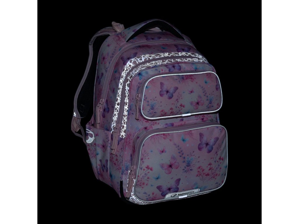- Batoh má spoustu výrazných reflexních prvků, díky kterým bude malá školačka v bezpečí (ze přední strany, po stranách i zezadu na ramenních popruzích). Přesvědčit se můžete tak, že batoh vyfotíte s bleskem.
