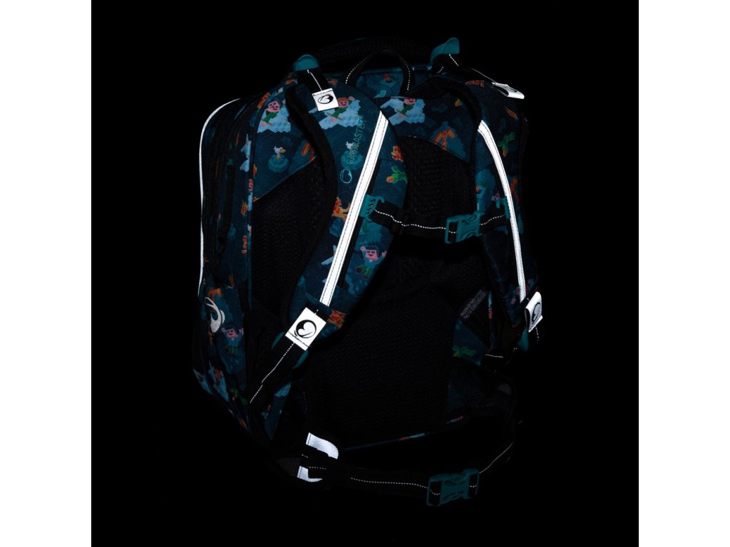 - Ramenní popruhy i zádový systém jsou měkce polstrované. Popruhy se nastavují pomocí horních a dolních plastových spon. Je třeba upravovat délku podle toho, jak školačka roste. Konce popruhů jsou magnetické. Aby neblincaly, jednoduše je magnetem připnete nad plastovou sponu.