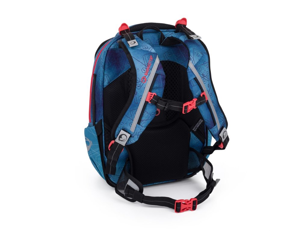 - Ramenní popruhy i zádový systém jsou měkce polstrované. Popruhy se nastavují pomocí horních a dolních plastových spon. Je třeba upravovat délku podle toho, jak školák roste. Konce popruhů jsou magnetické. Aby neblincaly, jednoduše je magnetem připnete nad plastovou sponu.