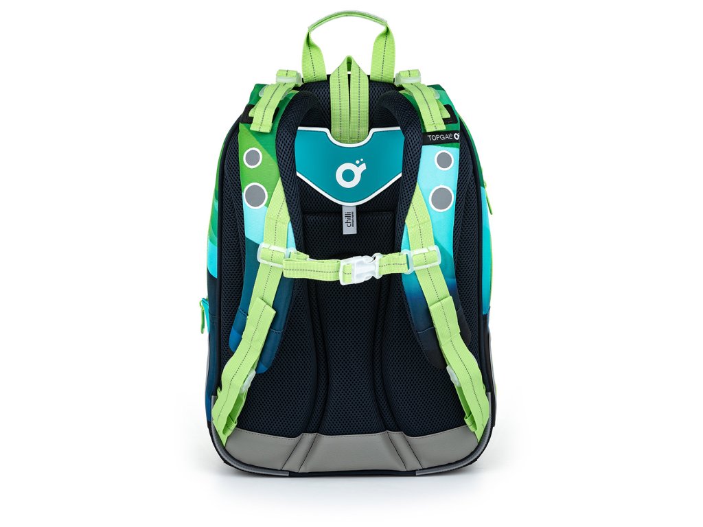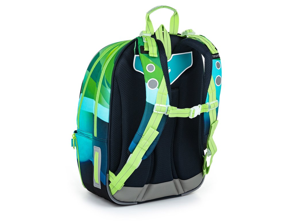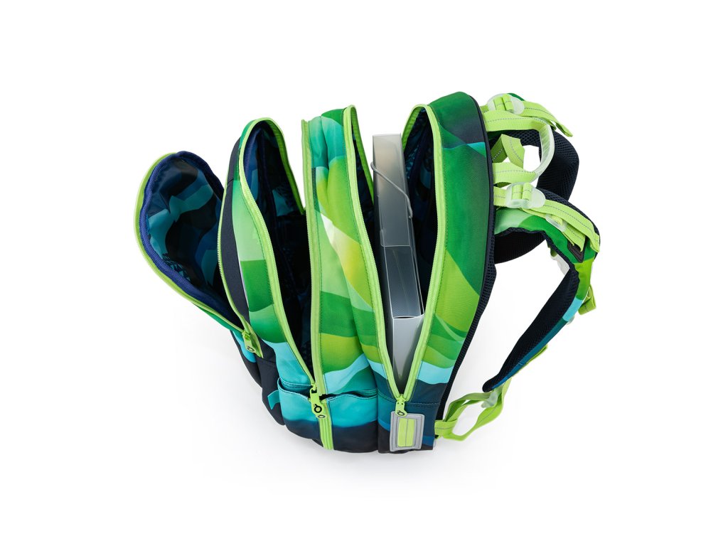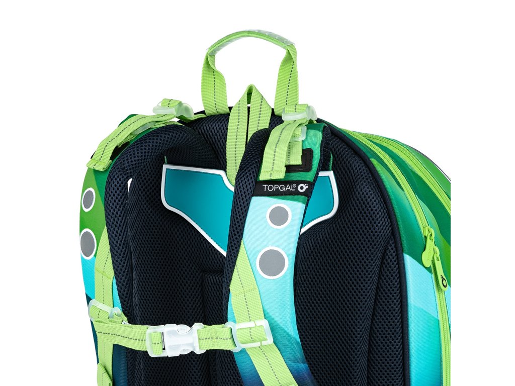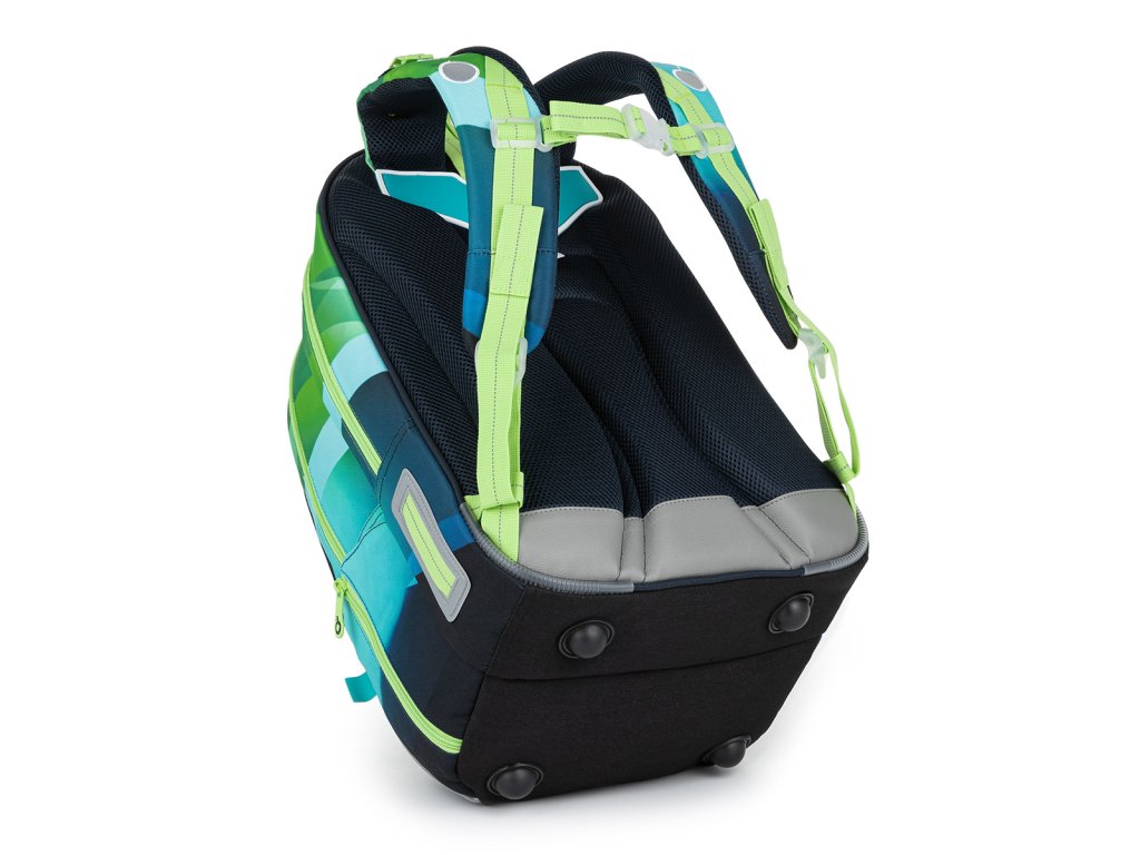Polstrované a ergonomicky tvarované jsou i ramenní popruhy, které zajistí pohodlné každodenní nošení i hodně těžkého školního nákladu. Ramenních popruhy lze regulovat na délku v jejich spodní části, ale můžete je utáhnout i k zádům v horní části. Samozřejmostí je výškově nastavitelný hrudní pás.
