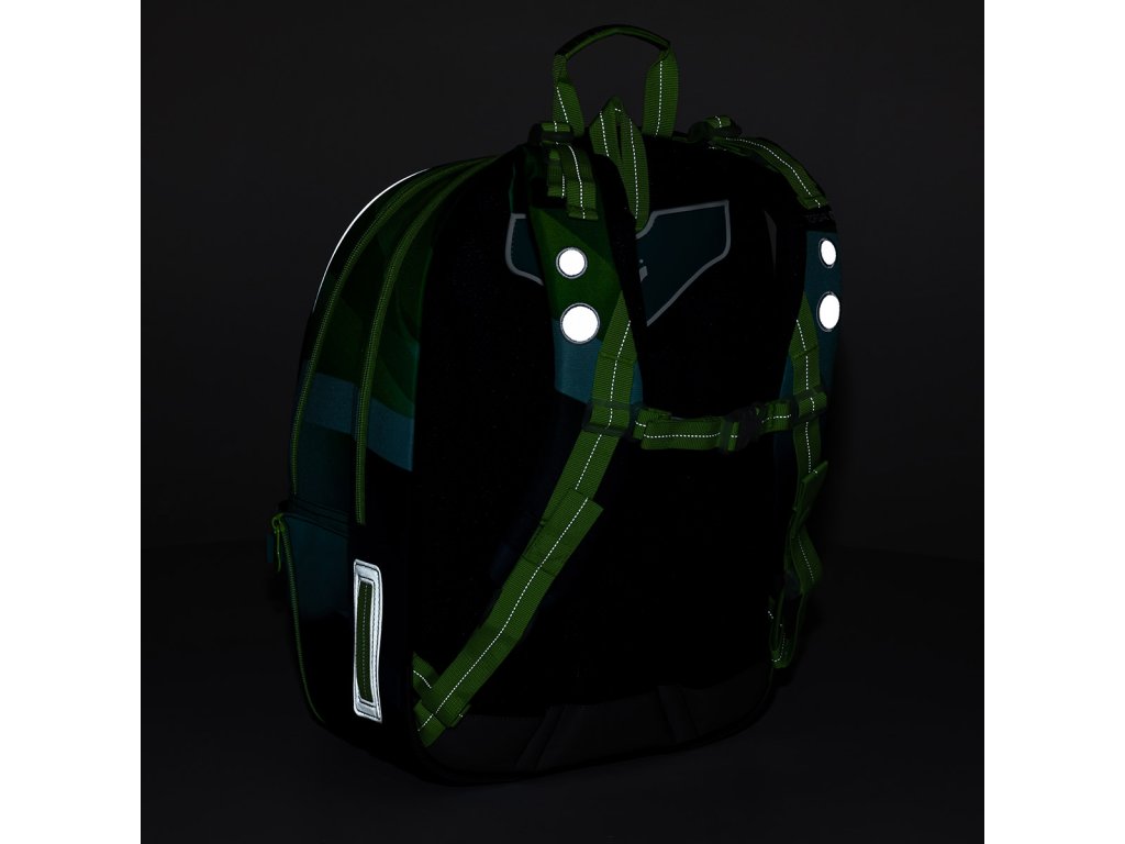 Batoh jsme vybavili reflexními prvky na všech jeho stranách - což dobře vidíte v detailních fotkách, kde je vyfocen ve tmě.