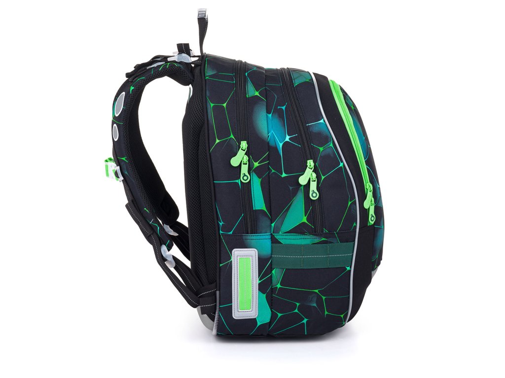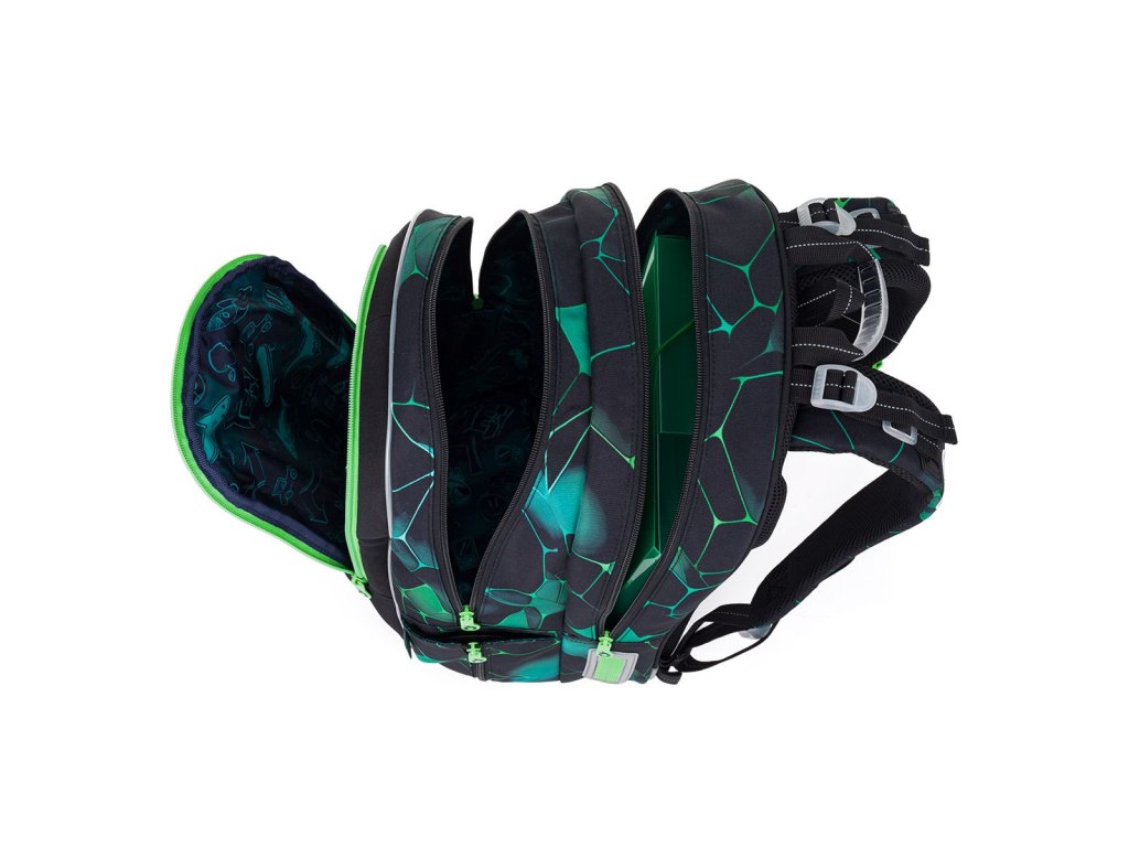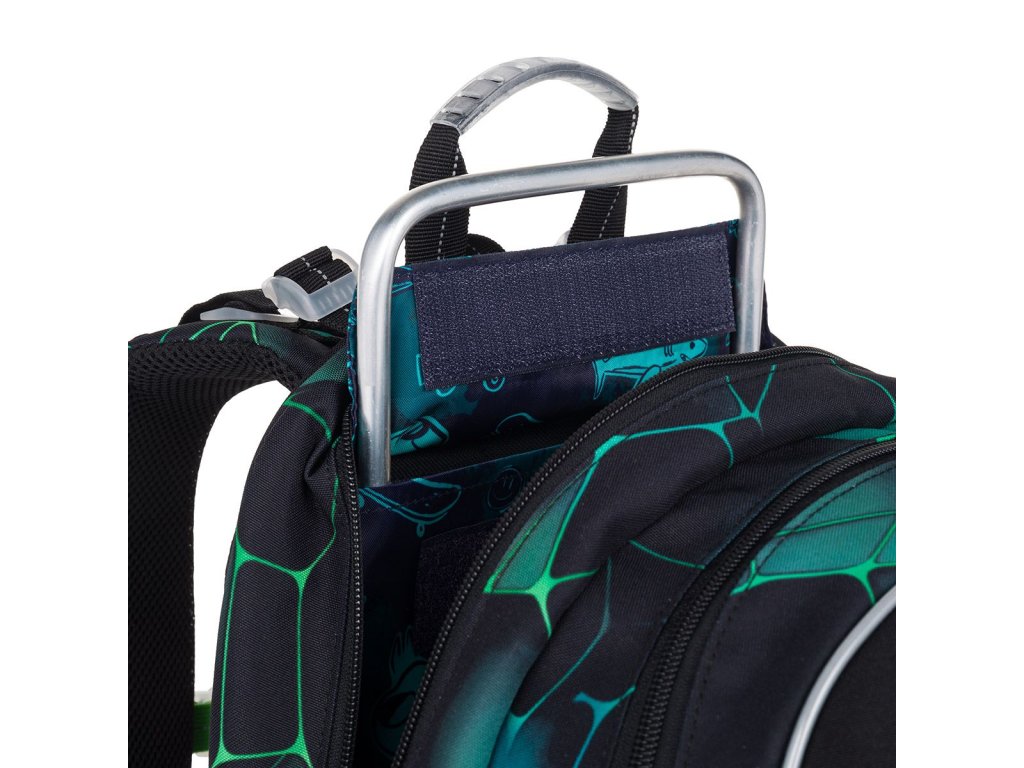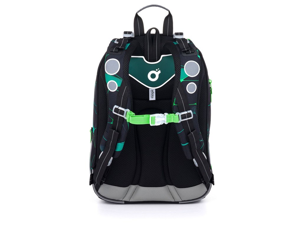 Polstrované a ergonomicky tvarované jsou i ramenní popruhy, které zajistí pohodlné každodenní nošení i hodně těžkého školního nákladu. Ramenních popruhy lze regulovat na délku v jejich spodní části, ale můžete je utáhnout i k zádům v horní části. Samozřejmostí je výškově nastavitelný hrudní pás.