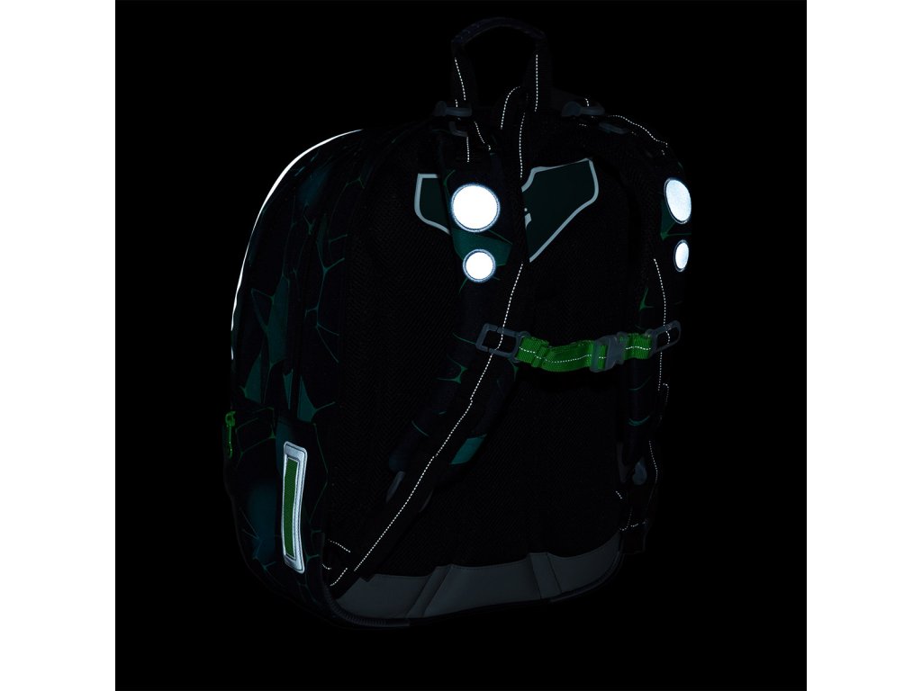 Batoh jsme vybavili reflexními prvky na všech jeho stranách - což dobře vidíte v detailních fotkách, kde je vyfocen ve tmě.