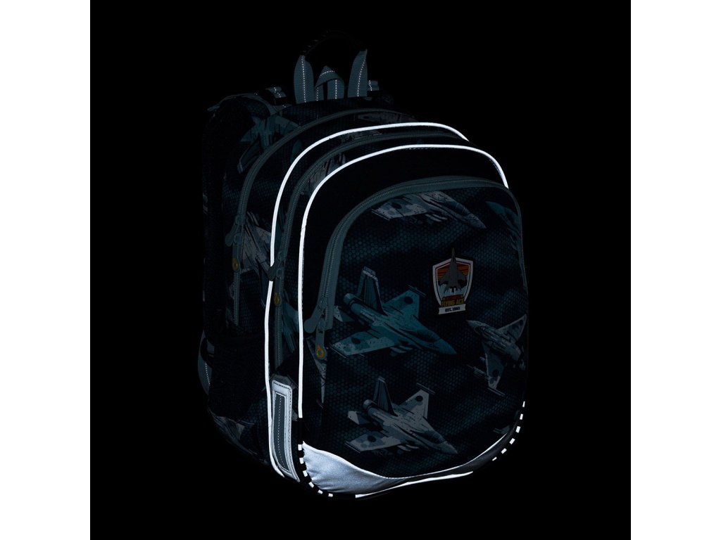 - reflexní prvky: na čele a bocích batohu, na ramenních popruzích